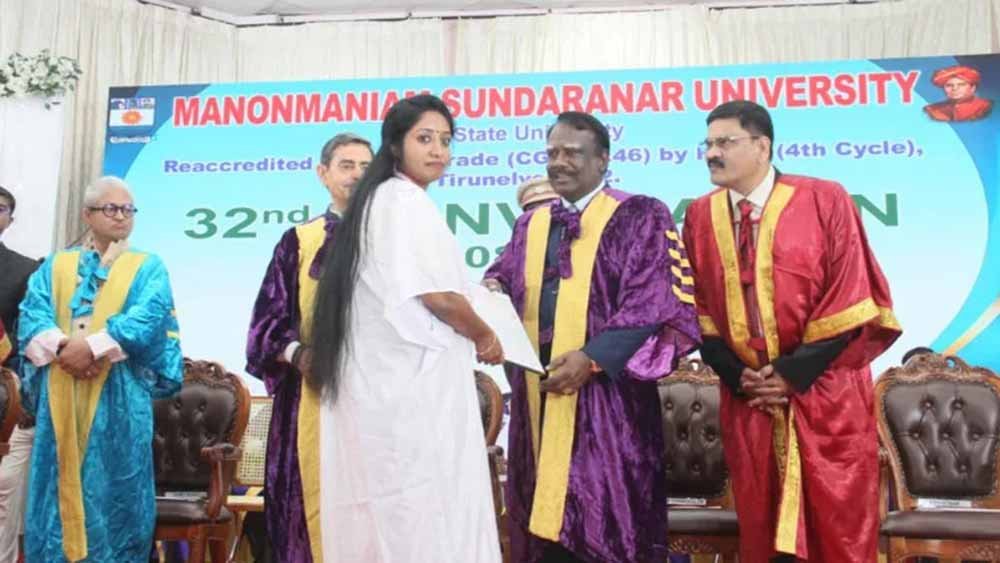 A dramatic incident unfolded at the 32nd convocation of Manonmaniam Sundaranar University (MSU) in Tirunelveli on Wednesday, when a PhD graduate refused to receive her degree from Tamil Nadu Governor and University Chancellor R.N. Ravi, and instead accepted it from the Vice-Chancellor.