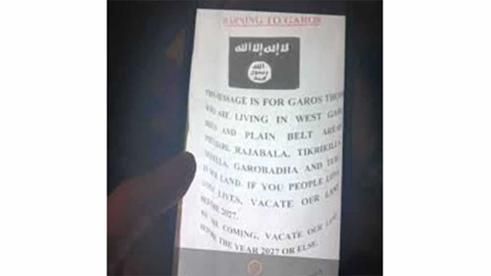 Meghalaya Police have initiated an investigation after a provocative poster, purportedly pasted by Islamic terrorists surfaced in Tura warning the indigenous Garo communities residing in the plain belt areas of Garo Hills to vacate the areas, triggering concerns over attempts to disturb communal harmony.