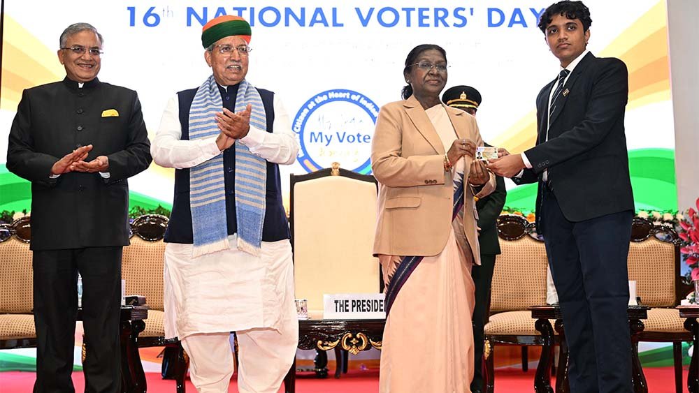 Highlighting civic responsibility, the President urged all adult citizens to exercise their franchise judiciously, free from temptation, misinformation, or prejudice, thereby strengthening the electoral system through the power of their conscience. President Murmu also congratulated young voters who have recently received their voter ID cards, describing them as the architects of India’s future. She expressed confidence that today’s youth would exercise their right to vote responsibly and contribute meaningfully to nation-building.