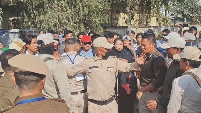 Tension gripped Imphal on Thursday as a large number of protesters forced their way into the main venue of the Manipur Sangai Festival at Hapta Kangjeibung, clashing with police and security forces in opposition to the state government’s decision to host the annual tourism event amid the ongoing displacement crisis.