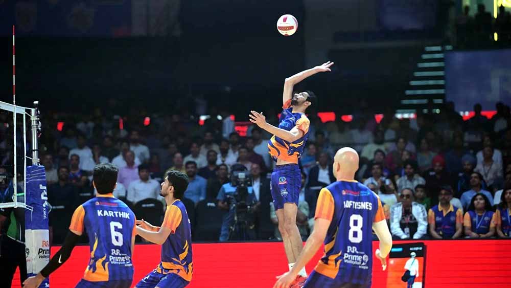 Earlier, Mumbai Meteors defeated the Kochi Blue Spikers in a five-set thriller, winning the match 15-7, 7-15, 13-15, 15-8, 15-11 in the Prime Volleyball League (PVL) here on Friday, sealing a place in the semifinals on Tuesday. Karthik was named the Player of the Match.