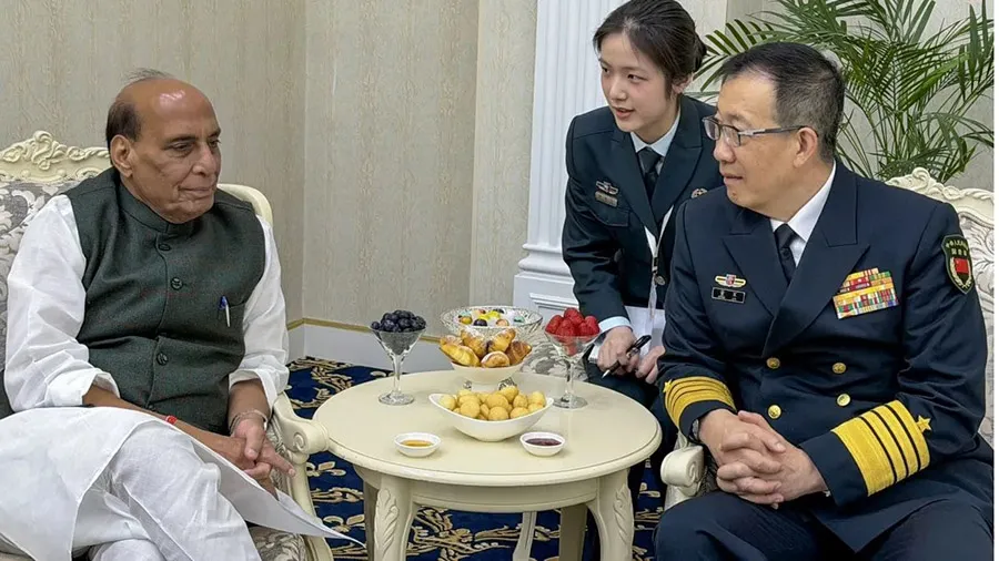 Defence Minister Rajnath Singh met his Chinese counterpart Admiral Dong Jun in Bishkek to discuss maintaining peace and tranquillity along the Line of Actual Control (LAC) and broader regional security concerns including the West Asia crisis.