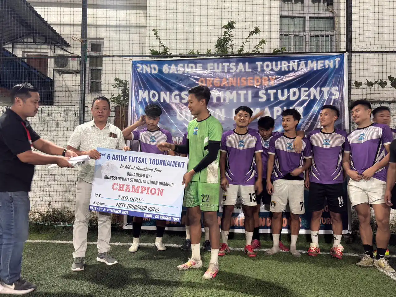 Royal FC emerged as champions of the 2nd MKTD Open Futsal Tournament organised by the Mongsenyimti Kaketshir Telungjem Dimapur (MKTD) on March 3–4 at G.K. Rengma Turf, Dimapur. The tournament was organised as a fundraising initiative in aid of the “Homeland Tour,” an educational and cultural excursion to Mongsenyimti Village for HSLC and HSSLC students who recently appeared for their board examinations.