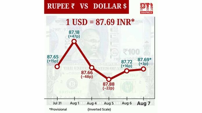 The rupee consolidated in a narrow range and settled for the day higher by just 3 paise at 87.69 (provisional) against the US dollar on Thursday, after US President Donald Trump slapped an additional 25% duty — doubling it to 50% — on Indian goods, denting market sentiments.