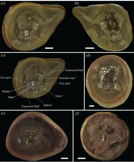 They found a ribbon of teeth known as a radula that is common to all mollusks, including nautiluses and octopuses. Each row had 11 teeth. Octopuses have either seven or nine.