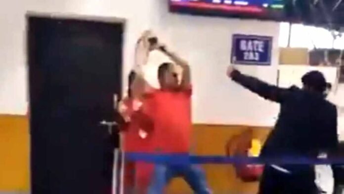 The incident was caught on camera, and a video that has gone viral on social media showed the enraged army officer hitting several airline employees with an iron stand.