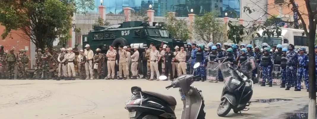 Security measures were significantly intensified in anticipation of the protest, with multiple layers of barricades set up on all roads leading to the Raj Bhavan.