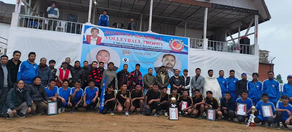 The tournament witnessed enthusiastic participation from across the district, showcasing remarkable talent and sportsmanship. In the final match, Huhtangrü Village emerged as champion, while Frontier Legends, Pongrongrü secured the runner-up position. In the Individual Awards, Player of the Tournament was bagged by Kirito (Jersey No. 6), Huhtangrü Village; Best Spiker by Yantsuba (Jersey No. 11), Frontier Legends, Pongrongrü; Best Setter by Dungtikhum (Jersey No. 8), Sunny Young Club Tuensang; and Best Back by Lato, Frontier Legends, Pongrongrü.