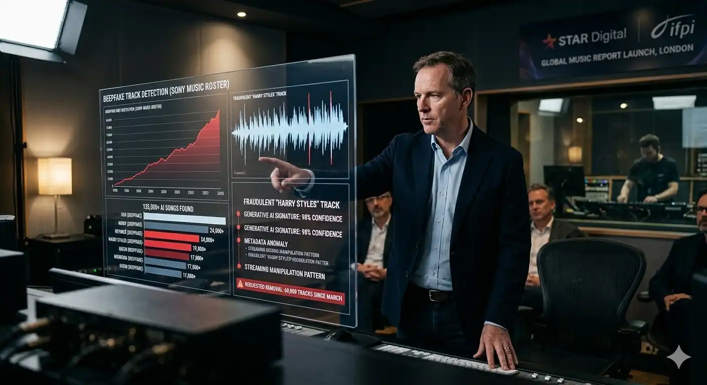 Music giant Sony Music says it has requested the removal of more than 135,000 songs by fraudsters impersonating its artists on streaming services.