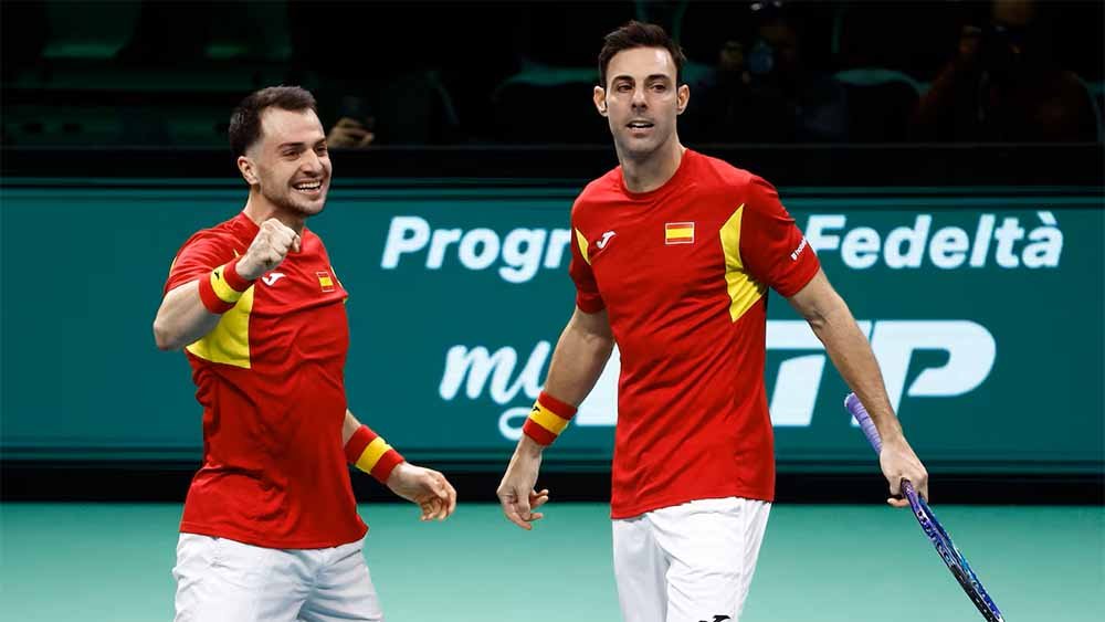 Six-times champions Spain edged past Germany 2-1 on Saturday to reach their first Davis Cup final since 2019, with their doubles pair Marcel Granollers and Pedro Martinez clinching a 6-2 3-6 6-3 win over Kevin Krawietz and Tim Puetz in the decisive match.