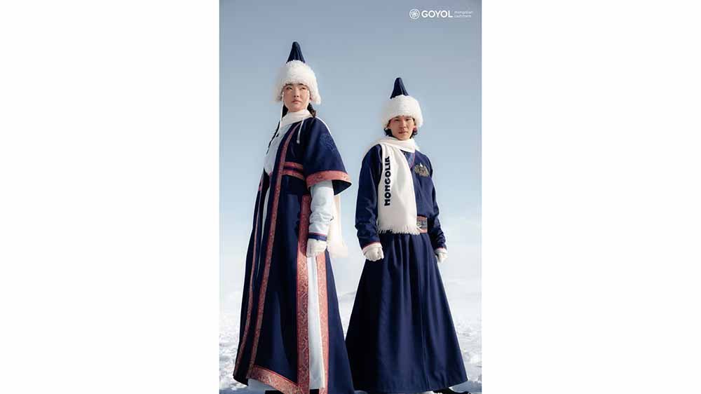 “Blue is a spiritual and national symbol tied to the sky, as the sky has long been considered as the god in the steppes,” Goyol’s creative director Munkhbayasgalan Delgerbat said.