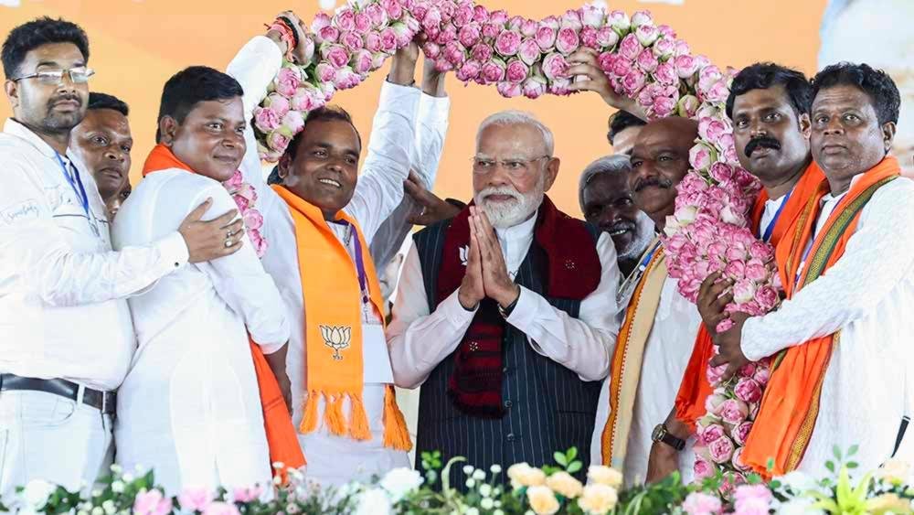 Modi also sought to pitch the BJP as the party that seeks tribal empowerment in the Junglemahal region, while accusing the TMC and the Congress of insulting President Droupadi Murmu.