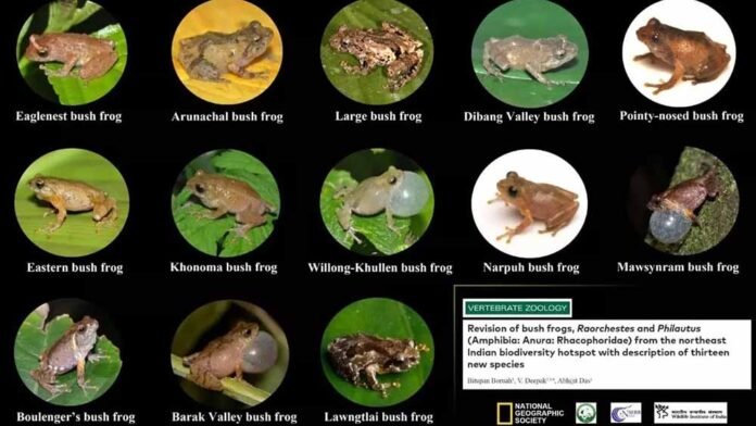 The remarkable amphibian diversity of the Northeast was validated yet again by the discovery of as many as 13 new species of frogs in the region. Scientists of the Wildlife Institute of India (WII), Dehradun, announced the results of a major taxonomic work spanning over several years resulting in the discovery of the new species of amphibians from Northeast India, reports The Assam Tribune.